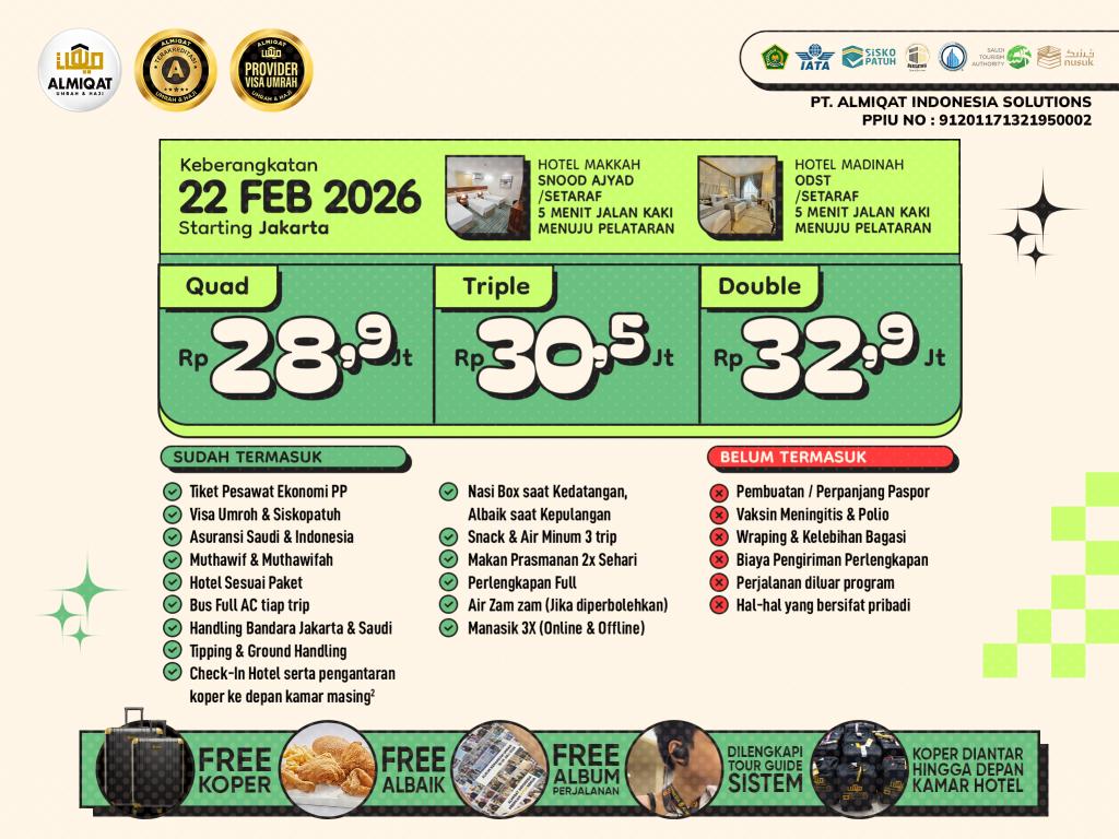 - Harga dan program sewaktu-waktu bisa berubah sesuai regulasi Saudi & Indonesia.