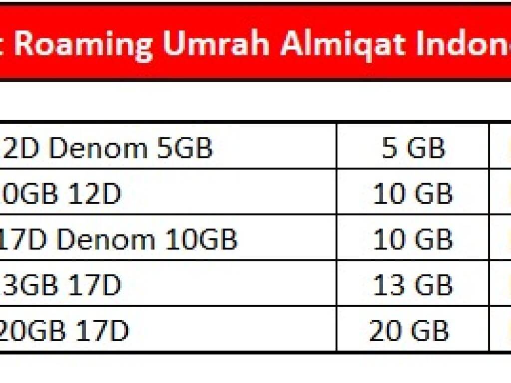 | Nama Produk | Internet RoaMAX Umrah 10GB 17 Hari |